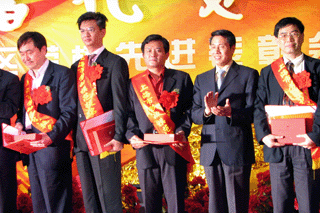 2007年4月30日在普陀區(qū)勞模先進表彰會上,我公司總經(jīng)理史益敏榮獲普陀區(qū)2004~2006年度“上海市勞動模范提名獎”和普陀區(qū)2004~2006年度“先進生產(chǎn)(工作者)”稱號。圖為史益敏同志在授獎儀式上。 群英璀璨,奉獻輝煌。在普陀區(qū)《和諧禮贊——普陀區(qū)勞模先進表彰會》上,我公司總經(jīng)理史益敏同志和區(qū)領導及英模先進集體合影留念。
