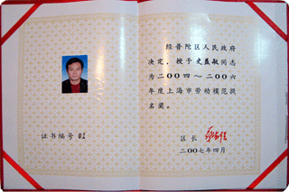 公司總經(jīng)理兼董事長(zhǎng)史益敏先生榮獲“上海市勞動(dòng)模范”提名獎(jiǎng)