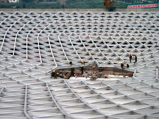 義烏游泳館鋁合金穹頂安裝封頂在即