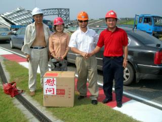 總經(jīng)理到遭受風(fēng)災(zāi)受損的F1看臺看望我公司搶修員工