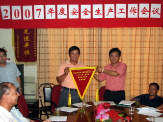 8月16日,公司召開2007年度安全生產(chǎn)工作會(huì)議,總經(jīng)理向皇都花園二期項(xiàng)目部授予《二00七上半年度安全生產(chǎn)先進(jìn)流動(dòng)紅旗》;表彰該項(xiàng)目部今年以來(lái)連續(xù)接受“國(guó)家認(rèn)證認(rèn)可監(jiān)管會(huì)專項(xiàng)檢查”,“市建委、市安全質(zhì)量監(jiān)督總站機(jī)械施工專項(xiàng)整治檢查”, “閔行區(qū)質(zhì)監(jiān)站檢查”,“上海質(zhì)量審核中心”的復(fù)審抽查;四次都獲得順利通過(guò)和贊賞。以可喜的成績(jī)向上級(jí)主管部門交出了一份令人滿意的答卷。