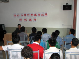 組織農(nóng)民工參加街道召開(kāi)的精神文明建設(shè)和計(jì)劃生育講座