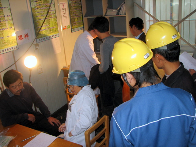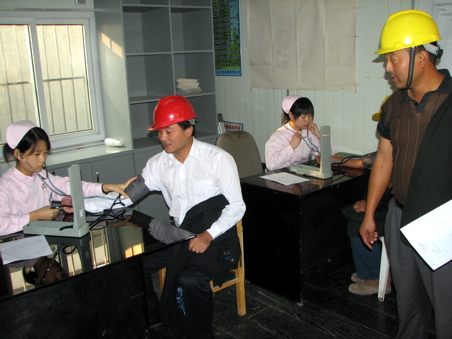 2007 年10月26日,我公司出資在皇都花園二期工地,因地制宜地組織了一次較大規(guī)模的建筑農(nóng)民工健康體檢活動(dòng),公司專(zhuān)程請(qǐng)來(lái)上海宏康醫(yī)院健康部醫(yī)生為工地一線農(nóng)民工檢查身體。圖為開(kāi)展健康檢查現(xiàn)場(chǎng)。