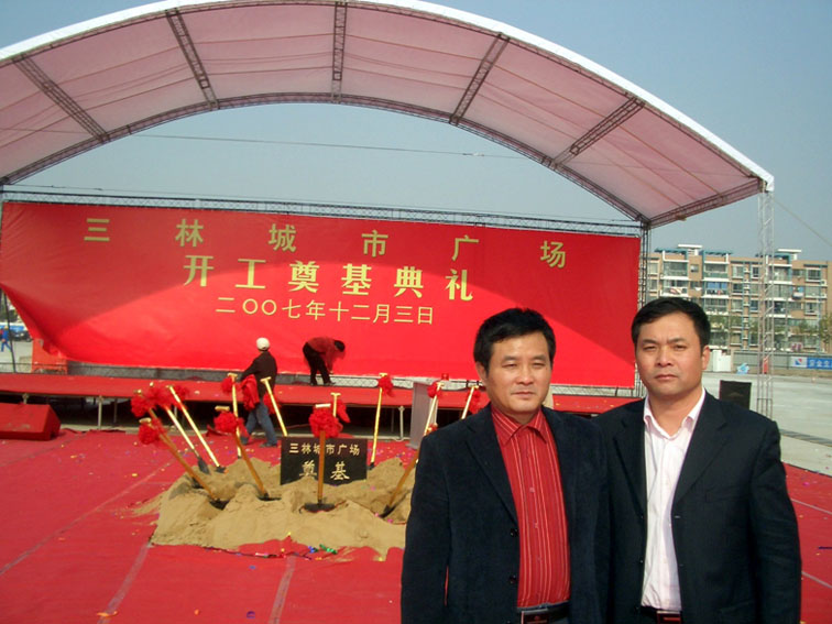 2007年12月3日,三林商業(yè)城破土動工。據(jù)悉,這是上海地產公司投資12億元興建的七彩商業(yè)中心項目,占地4.2萬平方米,地上建筑面積8萬平方米。兩年后,這里將成為集購物、休閑、娛樂、餐飲、健身為一體的綜合性開放式大型區(qū)域性社區(qū)購物中心。 我公司項目經理周耀武擔綱此項目的地基基礎樁基及圍護工程。圖為史益敏總經理在三林城市廣場開工奠基典禮儀式工地現(xiàn)場與項目經理周耀武合影留念。