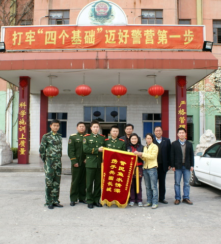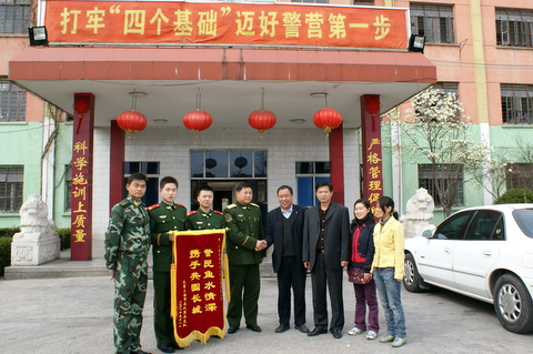 我北盛公司佘山東紫園項(xiàng)目部在佘山施工期間,與當(dāng)?shù)伛v軍-武警部隊(duì)上海市總隊(duì)某部結(jié)下深厚的友情。當(dāng)我公司得知該部新兵大隊(duì)訓(xùn)練一時(shí)缺乏訓(xùn)練器材,迅速調(diào)運(yùn)工地上最新的鋼管,幫助部隊(duì)在最急需的時(shí)候獲得高低杠等新兵訓(xùn)練器材。而部隊(duì)則在新兵訓(xùn)練結(jié)束后,拉出50名戰(zhàn)士,連續(xù)三天幫助工地搬運(yùn)建筑材料。軍民攜手相互幫助,譜寫出一篇新的魚水情深的佳話。圖為焦總帶隊(duì)拜訪新兵大隊(duì)。