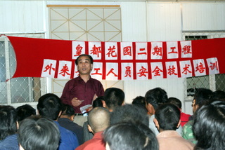 2008年5月14日晚上18:30分,我公司總承包項目-皇都花園二期項目部工地舉辦外來務工人員安全技術培訓。130余名農(nóng)民工參加了晚上的培訓,大家認真聽取專業(yè)老師的安全技術講課。培訓結束后還認真參加了答卷考試。