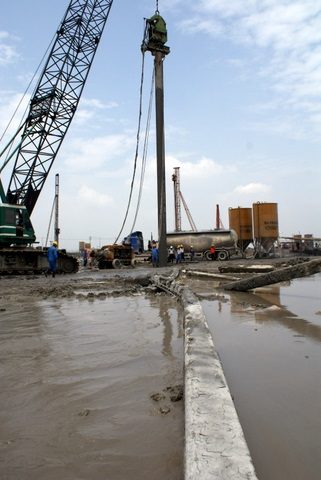 虹橋交通樞紐站作為2010上海世博會(huì)的配套工程,計(jì)劃于2009年啟用,它東起虹橋機(jī)場(chǎng),西至華翔路,南起滬青平公路,北至天山路,方圓13.22平方公里。建成后,將有京滬高速鐵路、滬杭磁懸浮、浦東磁懸浮、青浦低速磁懸浮線和2號(hào)線、5號(hào)線、10號(hào)線、13號(hào)線等多條軌道交通線等現(xiàn)代化的交通匯集于此,成為上海輻射全國(guó)的重要通道。我公司宗國(guó)良帶領(lǐng)項(xiàng)目部在虹橋交通樞紐站擔(dān)任清除地下基礎(chǔ)障礙的任務(wù);如何將一根根埋藏在地底下幾十米深的廢樁連根拔出,清除隱患,他們有一手獨(dú)到的可以大顯神通的工法和裝備?!傲Π吻рx除廢樁,清除障礙顯神通”。