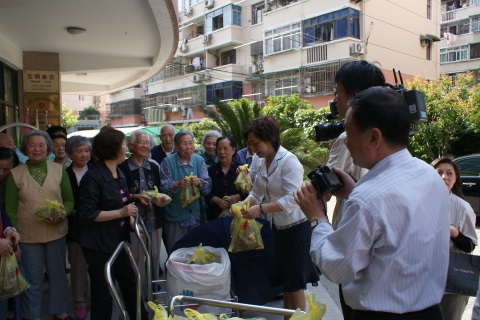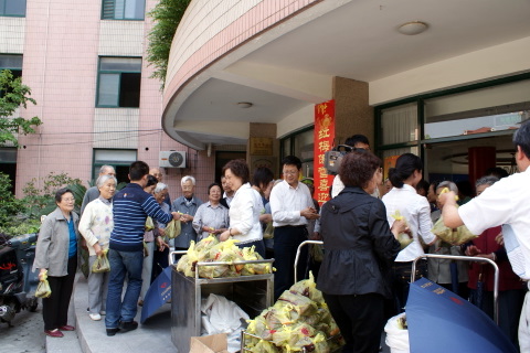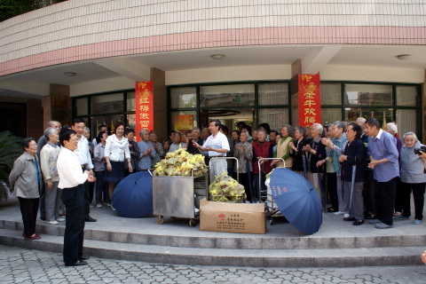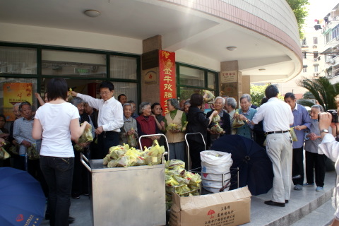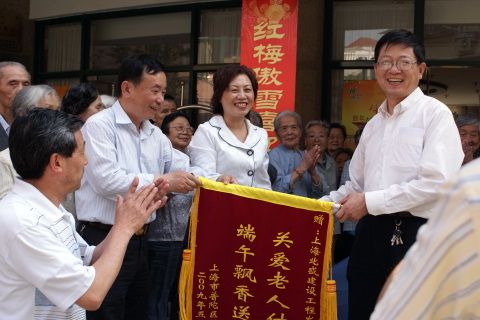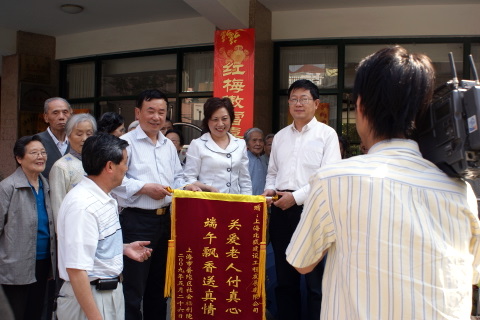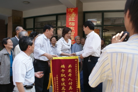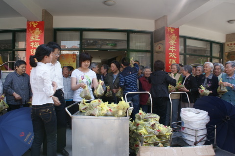5月26日下午3:00,北盛公司黨支部副書記葉世安帶領黨團員一行6人來到棗陽路515號普陀區(qū)福利院,會同普陀區(qū)老年基金會領導一起向敬老院的老人們發(fā)送”五芳齋”粽子。福利院向北盛公司贈送表示謝意的旌旗,普陀區(qū)老年基金會領導與葉世安同志分別發(fā)言,向老人們致以節(jié)日問候。