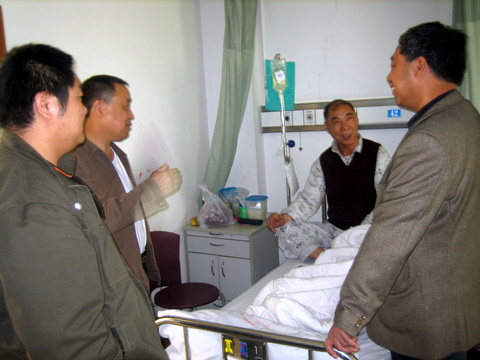 ☆2009年5月4日上午,焦鎖坤、葉世安、楊志偉、張峰到市六醫(yī)院急診住院部探望黃永杰。這位年近七十的老同志在公司里一直擔(dān)任質(zhì)量安全部的經(jīng)理職務(wù),他對(duì)工作兢兢業(yè)業(yè),是位德高望重的老人。焦總代表公司送上慰問金和幾大袋水果以示慰公司黨政工領(lǐng)導(dǎo)對(duì)他的慰問。