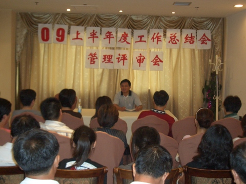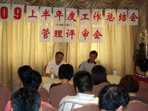 2009年7月17日下午,公司假座金盟豪大酒店召開2009上半年度工作總結(jié)會(huì)暨公司管理評(píng)審會(huì),焦鎖坤副總經(jīng)理代表公司作管理評(píng)審報(bào)告,史益敏總經(jīng)理作工作報(bào)告。