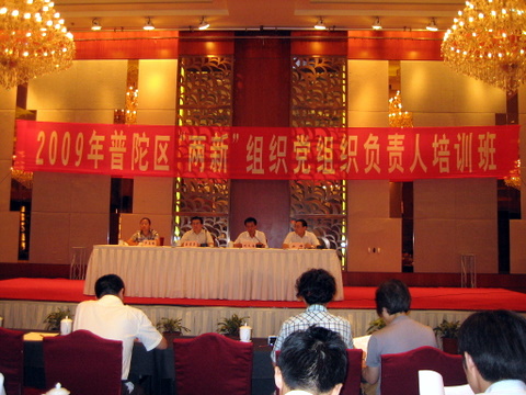 ☆2009年8月11日-12日,黨支部副書記葉世安參加普陀區(qū)委組織部、普陀區(qū)社會工作委員會、普陀區(qū)科技工作黨委在金山海鷗大廈酒店海鷗廳舉辦的2009年度普陀區(qū)兩新黨組織負責人培訓班。普陀區(qū)委組織部副部長姜道榮同志作開班動員講話,明確培訓班是落實上海市兩新組織黨建工作三年行動計劃實施細則、全面學習落實科學發(fā)展觀、開展學習實踐活動的迫切需要。市委黨建研究會秘書長汪丹博士在培訓班上作《如何增強兩新黨組織的有效性》專題輔導報告,認為:強調(diào)有效性就是有用、管用,對黨的事業(yè)和企業(yè)的發(fā)展有用,能夠解決黨和企業(yè)關注的問題。它不是體現(xiàn)在口號上,而是體現(xiàn)在行動上。要求基層黨組織的書記要在工作中學會“語言的轉(zhuǎn)換”。