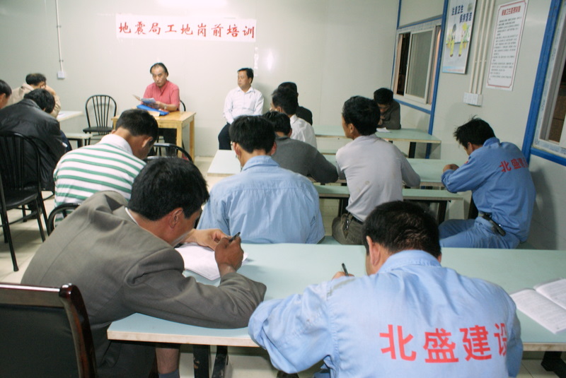 2011年5月11日晚上18:00~20:00我公司在地震局項目部工地農(nóng)民工業(yè)余學校舉辦外來務(wù)工人員崗前安全技術(shù)培訓。長風街道安全工作委員會和公司工會主席、質(zhì)量安全部有關(guān)同志在地震局項目部的有力配合下舉辦了農(nóng)民工培訓,大家認真聽取專業(yè)老師的安全技術(shù)講課,井然有序的課堂紀律給大家留下深刻印象。培訓結(jié)束后還將參加答卷考試。