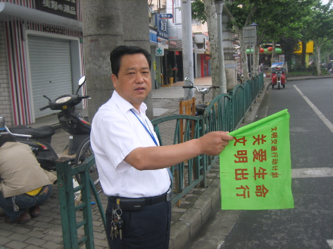 2012年5月14日-18日,北盛公司四位志愿者(達夢嬌、陳土生、葉世安、谷從發(fā))熱情承擔金沙江路棗陽路口的交通文明志愿者任務,每天上午提早趕到路口,揮動手中的小彩旗,協助交通民警和交通協管員維護交通暢通。在此向他們道一聲:你們辛苦了! 早晨的金沙江路車水馬龍,一派沸騰景象。穿梭不息的車流和人群都急急忙忙地擠在這條狹小的馬路上搶先過往,稍有疏忽,極易釀成交通事故。 為了確保一方平安,一茬又一茬的交通文明志愿者們象春風里的雨后春筍,在繁雜的馬路邊上成為一道靚麗的風景線。