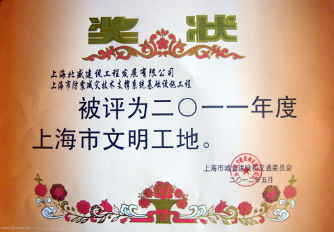 2012年5月,上海市城鄉(xiāng)建設(shè)和交通委員會(huì)授予北盛公司總承包的上海地震局工程2011年度上海市文明工地稱號(hào)。
