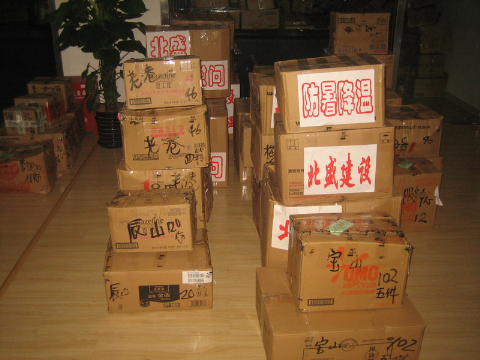 7月中旬,根據(jù)工作計劃,公司工會在預(yù)先對工地情況做好排摸的基礎(chǔ)上,訂購了大量防暑降溫用品。為便于發(fā)放,工作人員將這些物品逐一分類打包存放,并貼上標(biāo)簽加以明示。