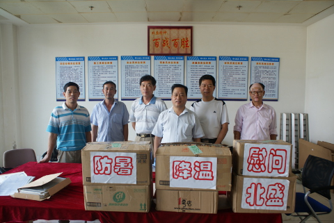 7月25日起,北盛黨支部書記、公司總經(jīng)理史益敏同志親自帶隊,將防暑用品送到下屬各項目部,為奮戰(zhàn)在施工一線的工友們送上洗衣粉、風(fēng)油精油、毛巾、香皂等慰問品,并叮囑大家要多注意休息,做好勞動保護(hù)。公司領(lǐng)導(dǎo)還與他們親切交談,了解工作及生活情況,感謝他們克服酷暑,堅守在工作崗位上,并要求他們注意安全、遵守安全制度,增強(qiáng)自我防范意識。史益敏總經(jīng)理還聽取了各項目部負(fù)責(zé)人關(guān)于防暑降溫工作部署情況的介紹,并一再強(qiáng)調(diào)一定要嚴(yán)格按照上級相關(guān)文件精神,采取切實有效的防暑降溫措施,做好防暑降溫工作,特別是要合理安排工作、休息時間,加大食堂和食品衛(wèi)生管理力度,確保用餐安全,為工友們營造一個良好舒適的工作和休息環(huán)境,確保夏季高溫期間的安全生產(chǎn)和文明施工工作的順利進(jìn)行。 ???? 據(jù)統(tǒng)計,本次公司已發(fā)出了價值4.5萬多元的慰問品,涉及48個項目基地。公司領(lǐng)導(dǎo)要求,相關(guān)部門及項目部負(fù)責(zé)人還要繼續(xù)堅持開展防暑降溫慰問,讓奮戰(zhàn)在一線的工友們過一個清涼的夏季。