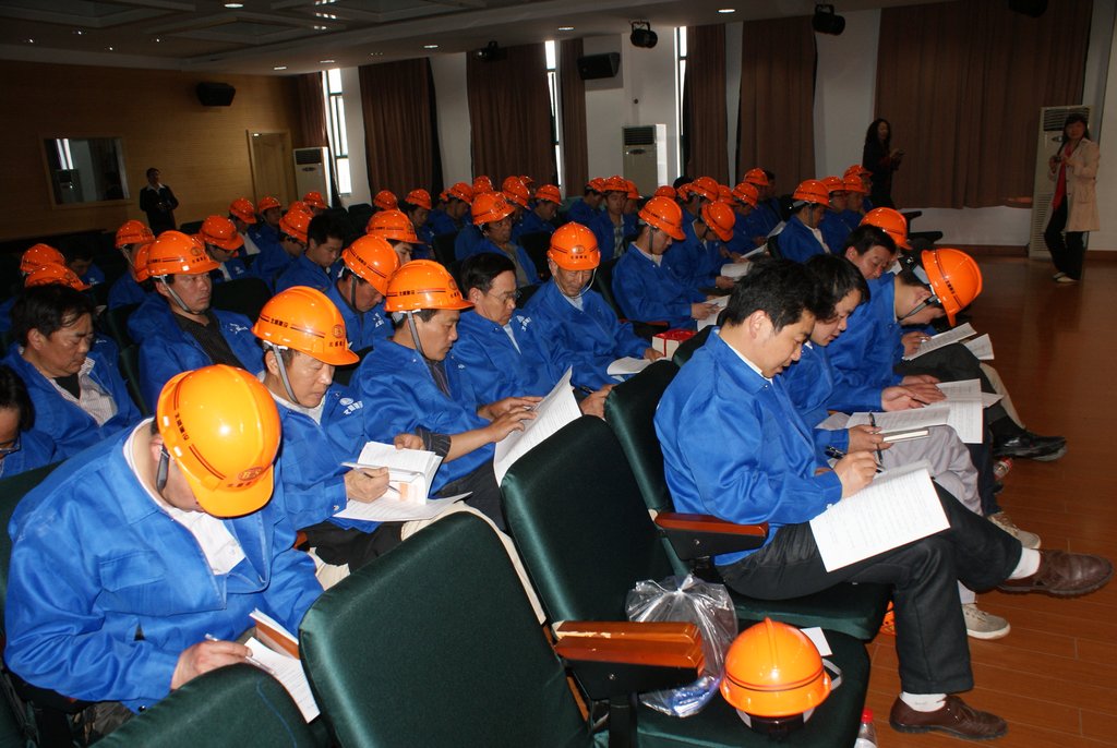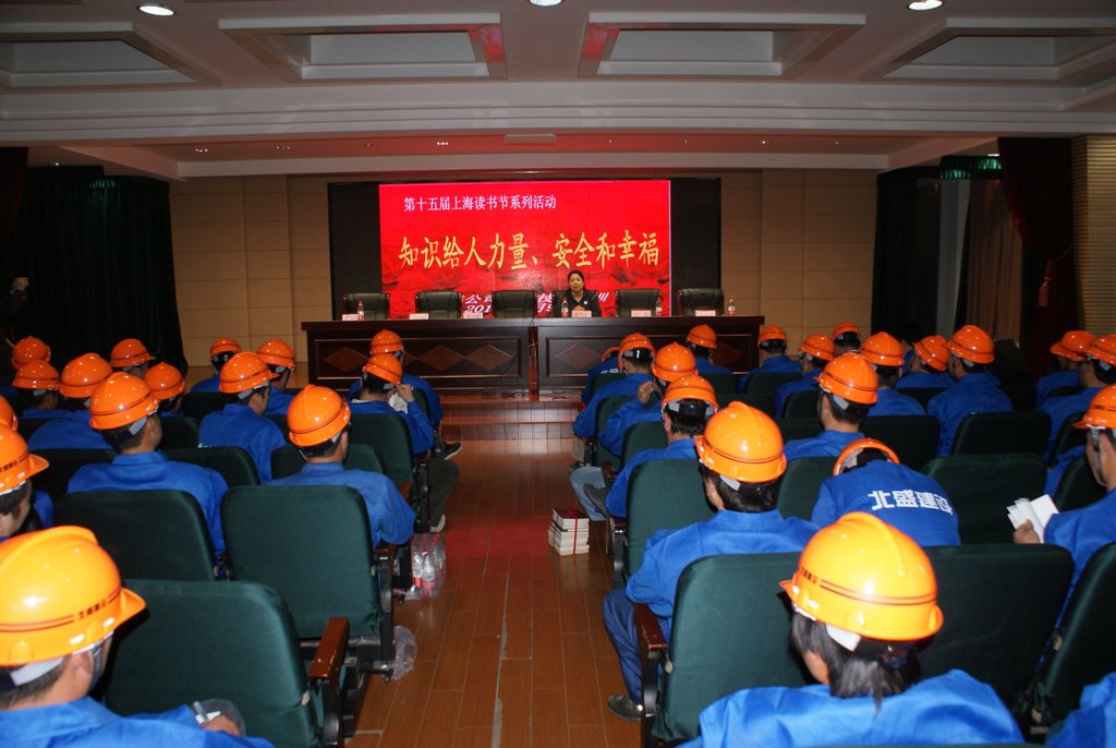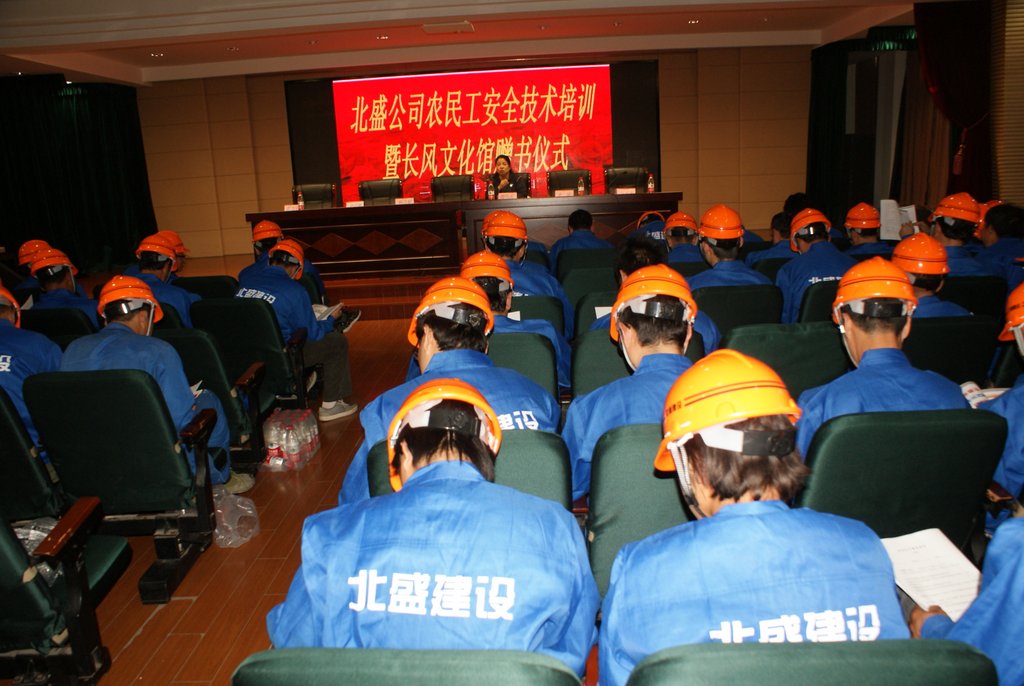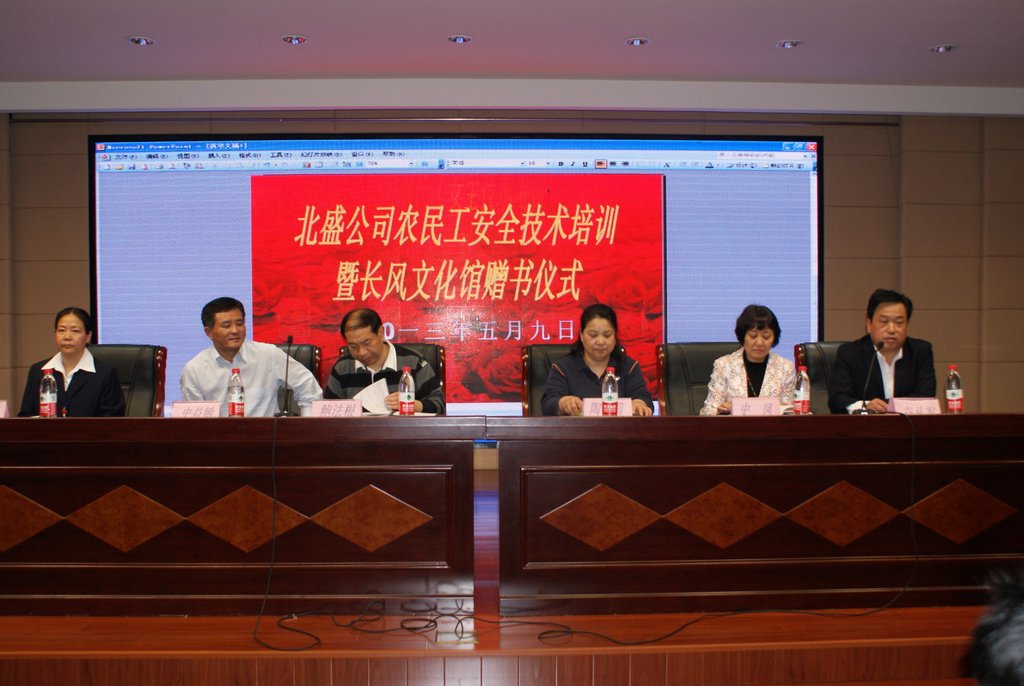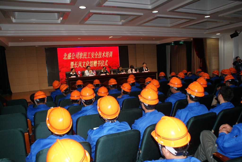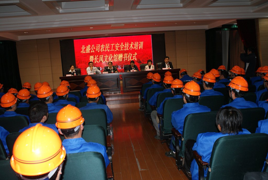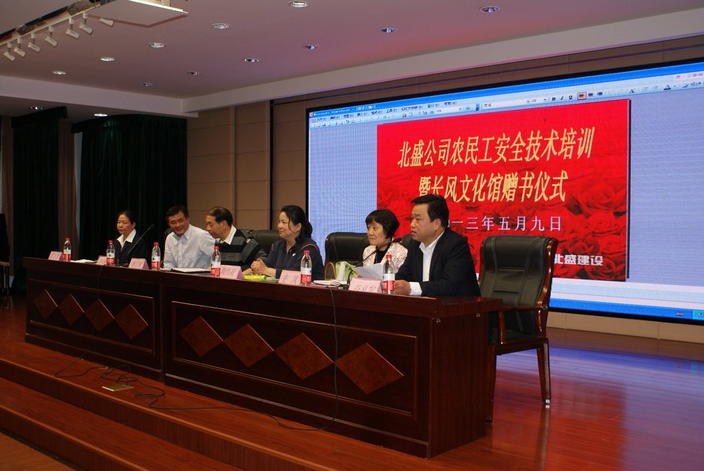 2013年5月9日下午2:00,北盛公司農(nóng)民工安全技術(shù)培訓暨長風圖書館贈書儀式在長風社區(qū)學校五樓會議室舉行。從各個項目部工地趕來參加本次培訓的農(nóng)民工代表,穿戴好嶄新的工作帽和工作衣,認真聽取了史益敏總經(jīng)理、長風街道安全生產(chǎn)委員會鮑法根主任的講話和上海祥安安全技術(shù)咨詢服務有限公司的陶偉莉老師的專業(yè)授課。