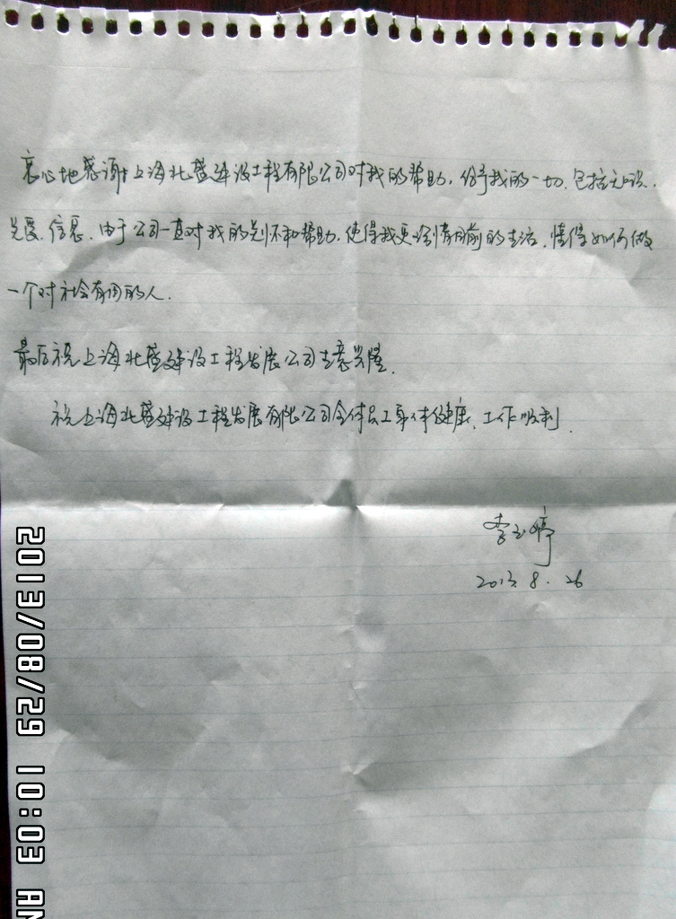 衷心地感謝上海北盛建設(shè)工程發(fā)展有限公司對我的幫助,給予我的一切,包括知識、關(guān)愛、信心,由于公司一直對我的關(guān)懷和幫助,使我更珍惜目前的生活,懂得如何做一個對社會有用的人。