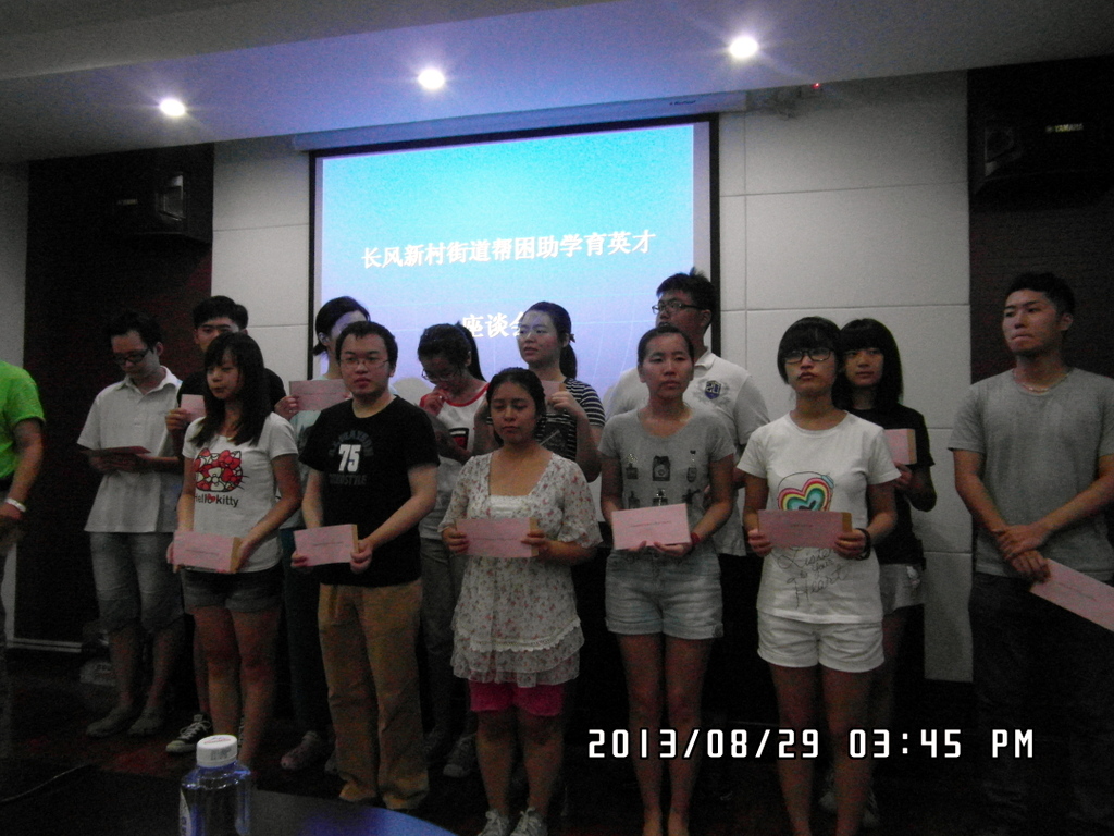 2013年8月29日,北盛公司參加長(zhǎng)風(fēng)商會(huì)在社區(qū)事務(wù)受理服務(wù)中心舉辦的每學(xué)期幫困助學(xué)活動(dòng)。