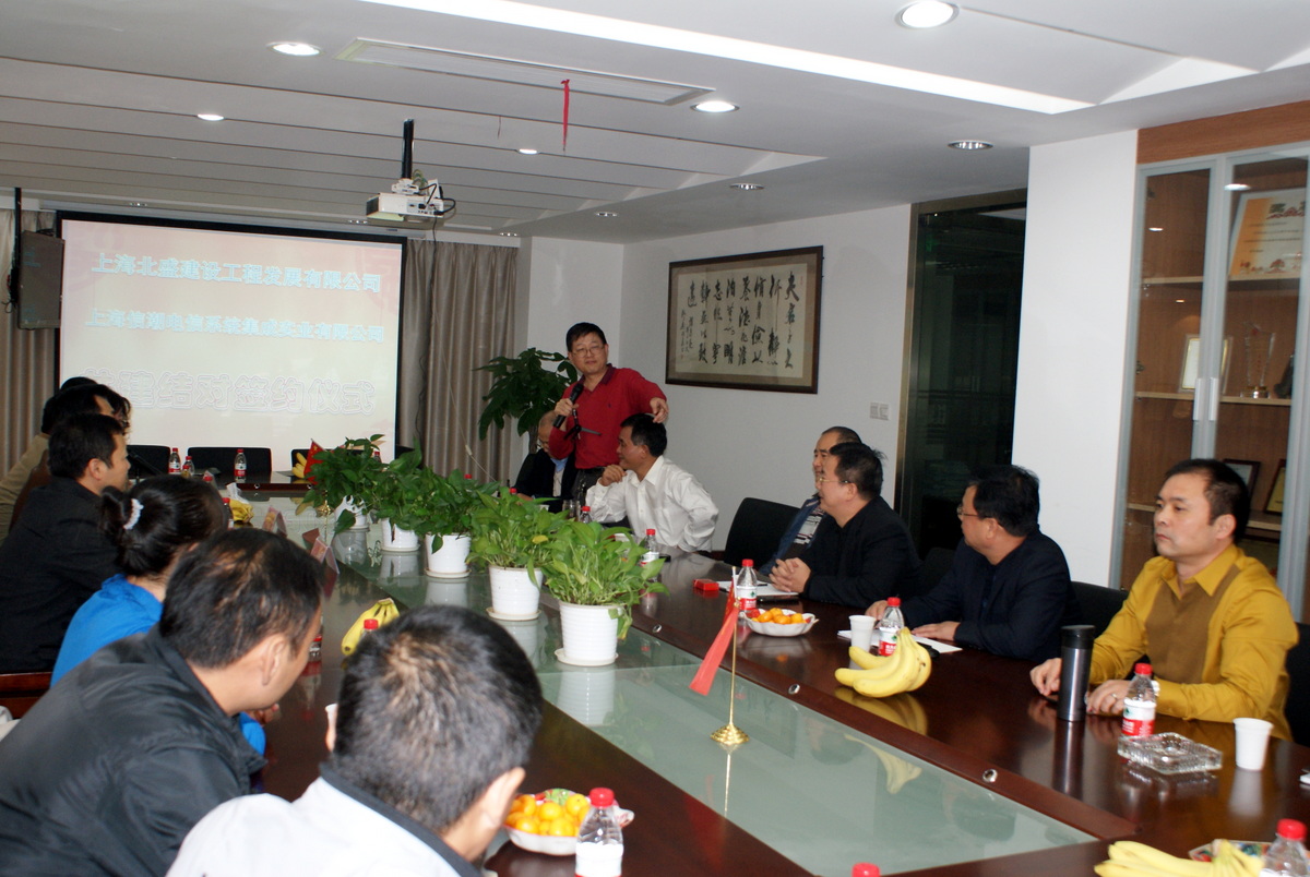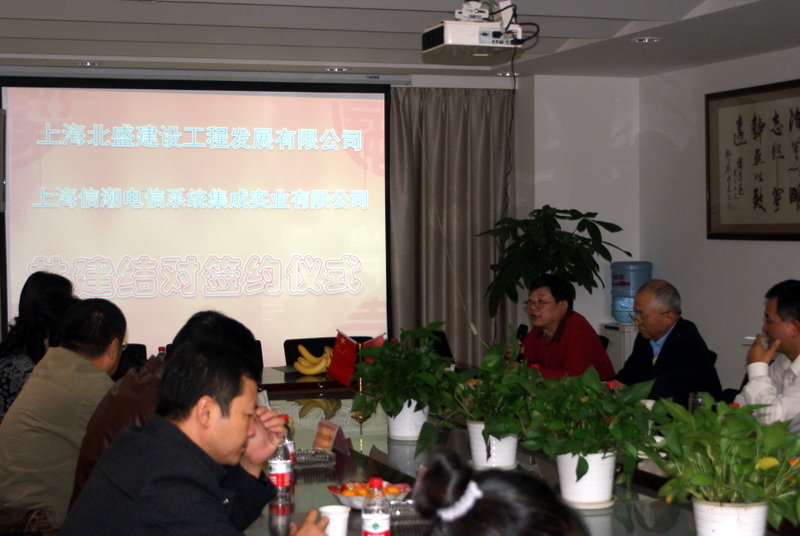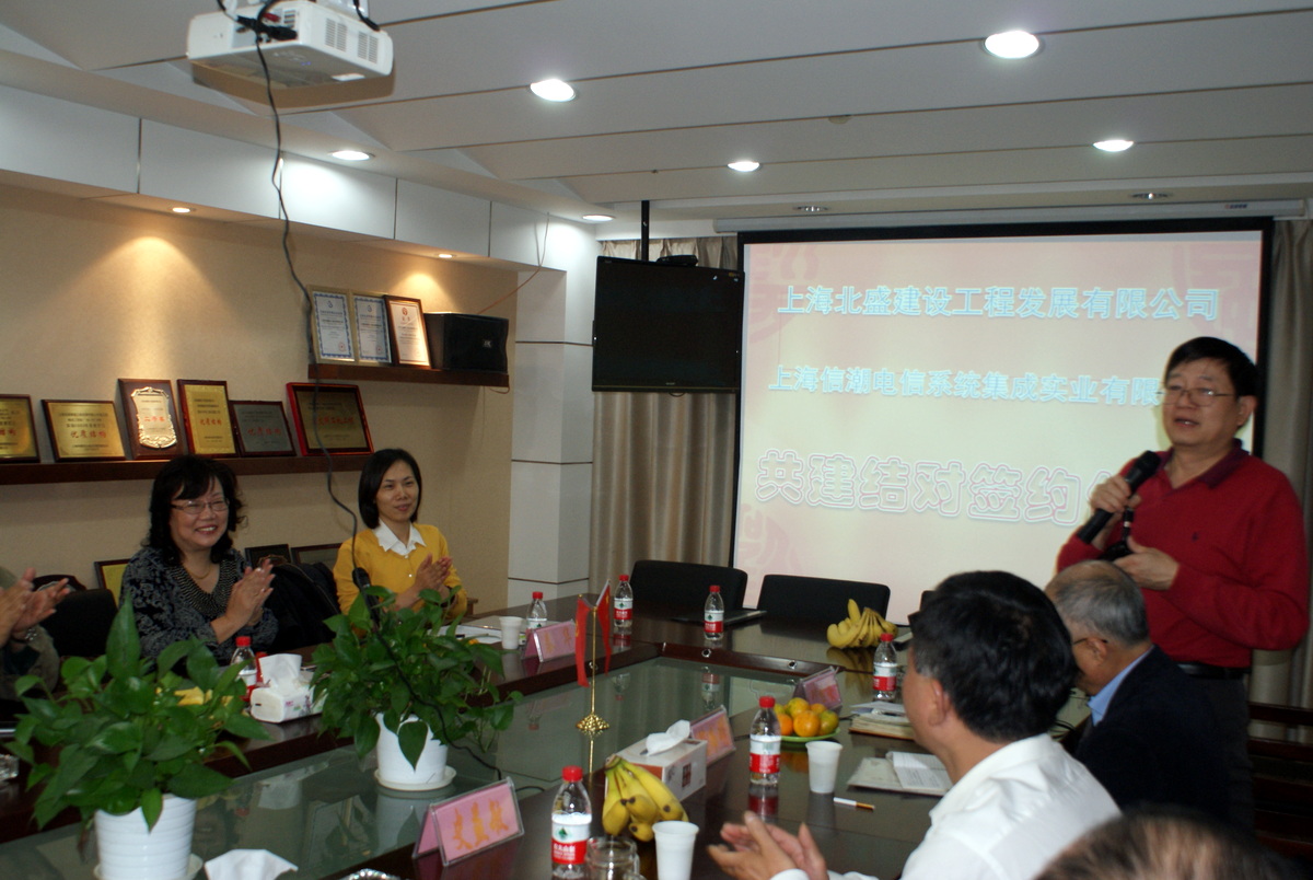 2013年10月25日下午北盛信潮兩家兩新組織黨支部在北盛公司會議室召開結(jié)對共建簽約儀式,出席會議的有長風(fēng)街道的綜合黨委黨務(wù)工作者陳書明,北盛董事長、總經(jīng)理黨支部書記史益敏、黨支部副書記葉世安,信潮電信總經(jīng)理吳沛青、黨支部書記陳宜正;區(qū)委組織部下派到信潮掛職干部秦華主持了會議,會上雙方放映了介紹單位創(chuàng)先爭優(yōu)的PPT視頻,各自介紹了出席簽約儀式的人員,雙方黨支部書記在發(fā)言中表示:北盛和信潮兩家同屬長風(fēng)街道黨工委領(lǐng)導(dǎo),同屬建筑行業(yè),又都是上海市文明單位,雙方有許多的共同點,應(yīng)該互相學(xué)習(xí)、優(yōu)勢互補(bǔ)、資源共享、攜手共進(jìn)!會上,北盛黨支部副書記宣讀了結(jié)對共建協(xié)議書,并在熱烈的掌聲中,由雙方單位的黨支部書記史益敏與陳宜正在結(jié)對共建協(xié)議書上蓋章簽名。最后,北盛建設(shè)與信潮電信兩家公司的總經(jīng)理對結(jié)對共建進(jìn)行了指導(dǎo)性的發(fā)言,就企業(yè)怎樣開展黨建工作交換了意見,充分肯定了黨支部的工作和作用。兩位公司領(lǐng)導(dǎo)還就大家共同感興趣的企業(yè)運(yùn)營、人才管理、市場拓展、業(yè)務(wù)優(yōu)勢互補(bǔ)等方面進(jìn)行了討論,并期待在下一輪的共建活動中進(jìn)一步推動“兩新”基層黨建以及經(jīng)營活動方面全方位的學(xué)習(xí)和交流。