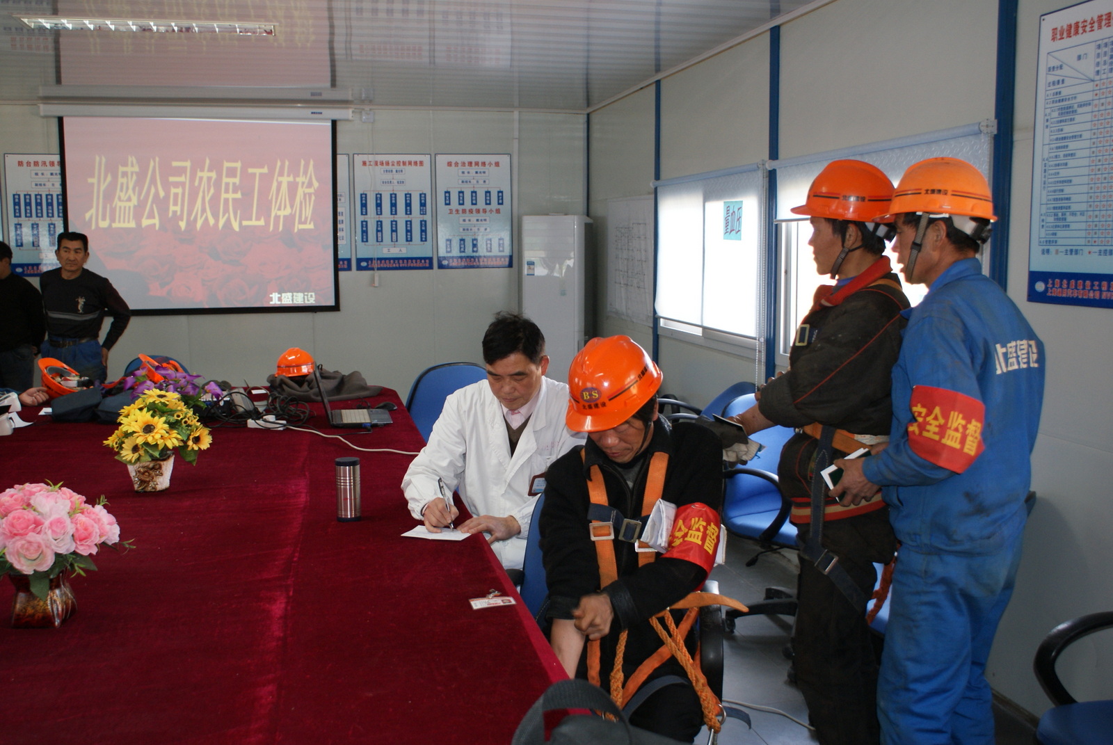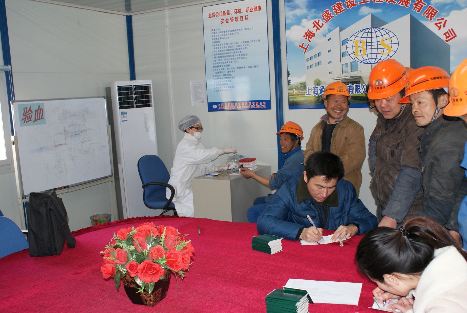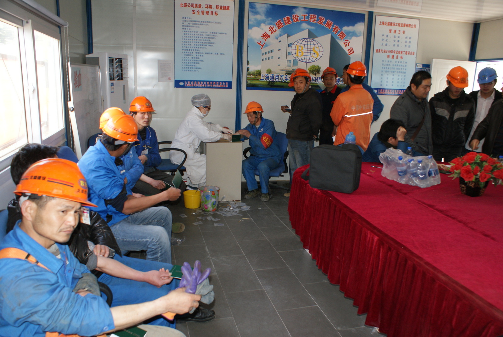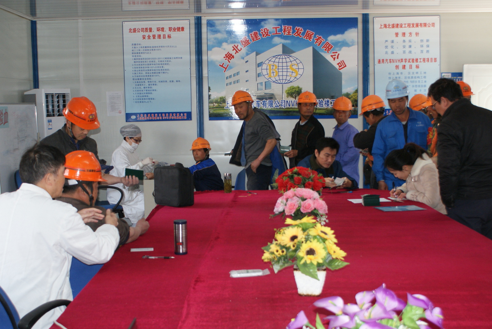 3月13日,北盛公司在通用汽車泛亞汽車技術(shù)中心工地開展農(nóng)民工免費體檢。