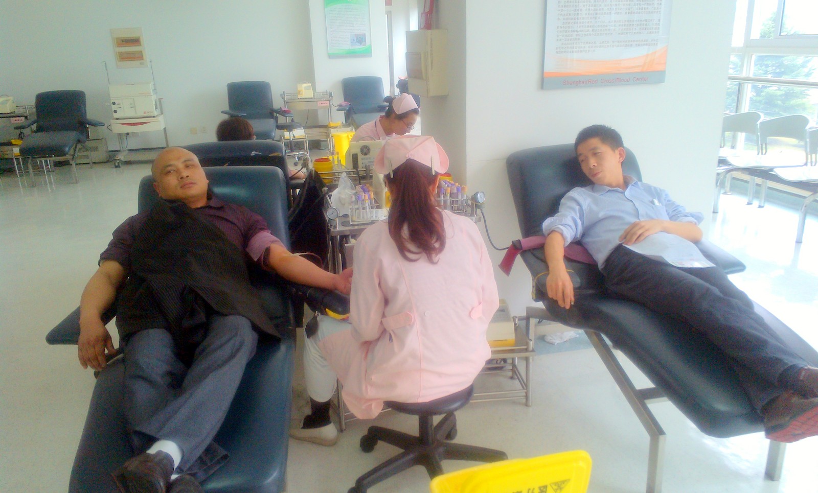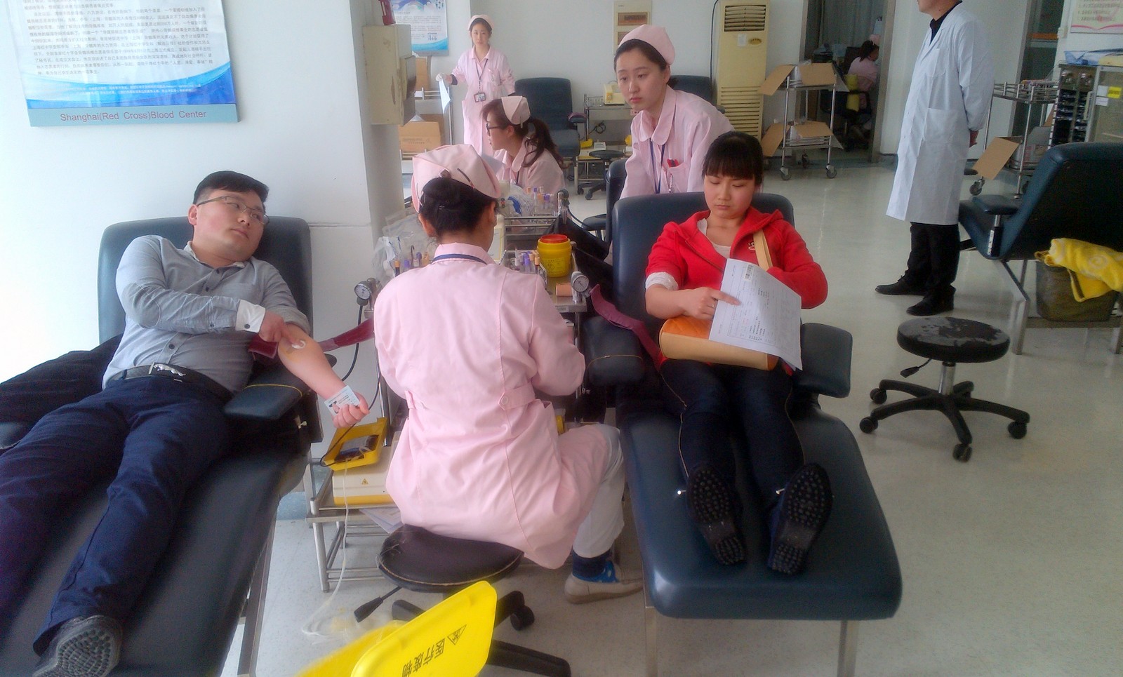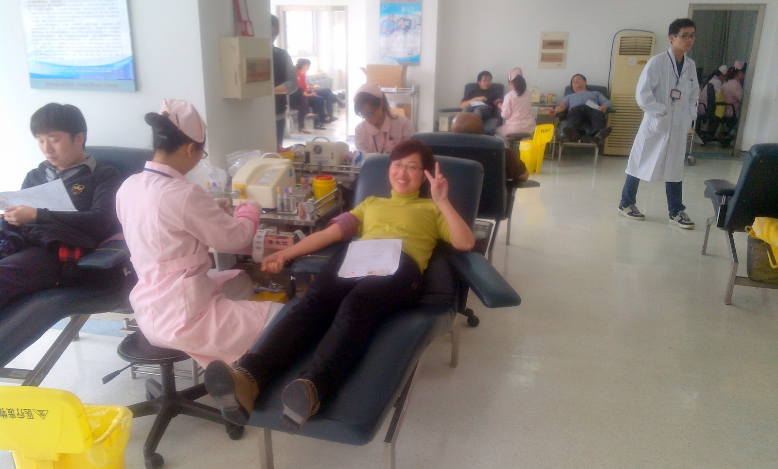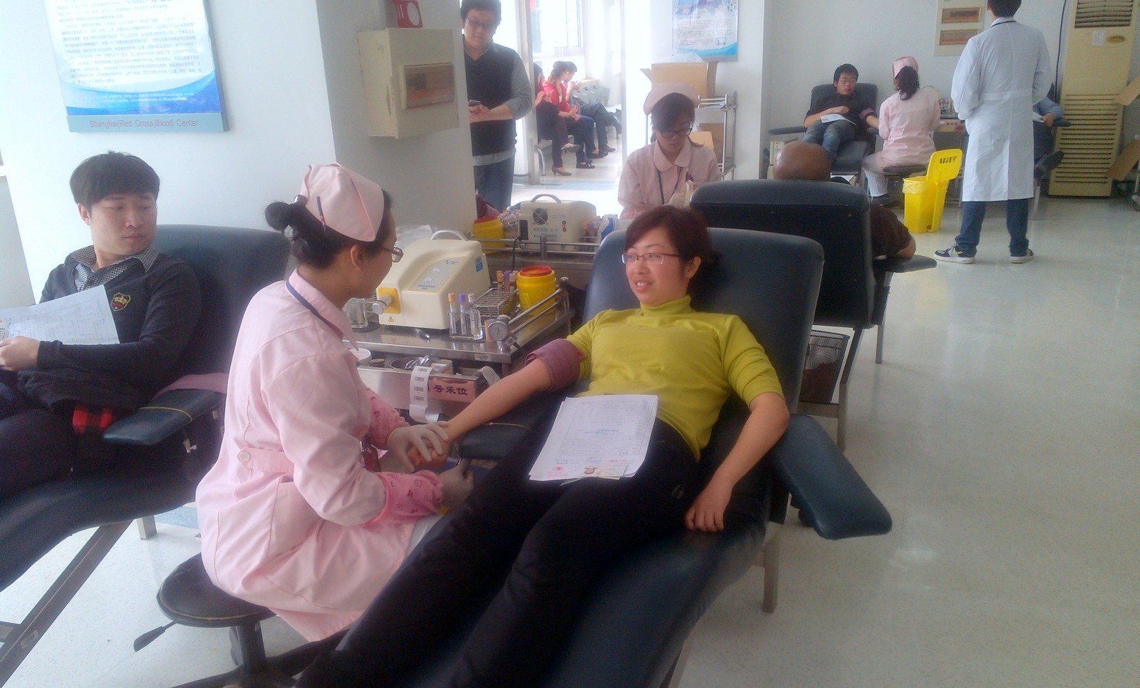 第一批無(wú)償獻(xiàn)血者弘揚(yáng)互助仁愛(ài)精神,奉獻(xiàn)助人愛(ài)心。今天北盛公司組織了11名同志到虹橋路1191號(hào)上海市血液中心參加無(wú)償獻(xiàn)血,除3人因?yàn)轶w重、血壓、心跳原因淘汰外,8人挽袖捐獻(xiàn)出自己一份愛(ài)心。每個(gè)人都有一條奔流不息的生命之河———血液。上海作為國(guó)際大都市,醫(yī)療用血量巨大。希望北盛員工鼓起小小的勇氣,用自己的血液挽救他人的生命。做一個(gè)高尚的有愛(ài)心的志愿者。