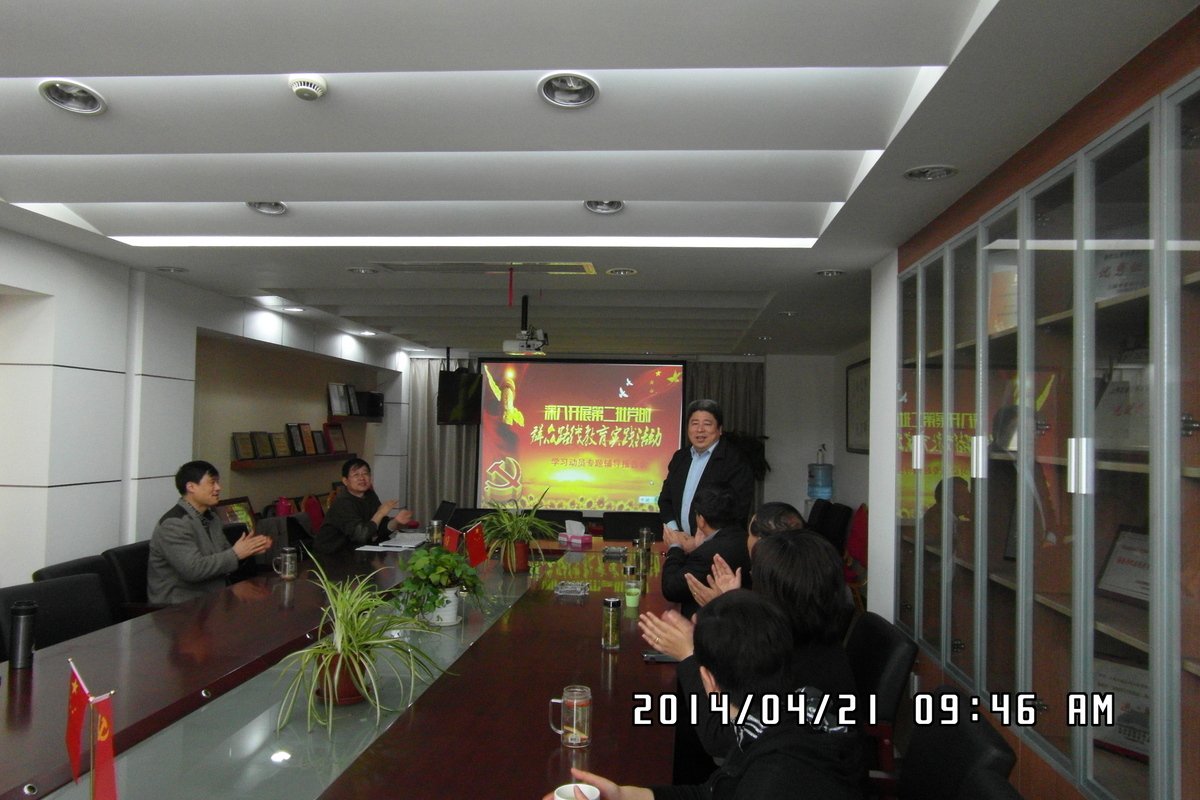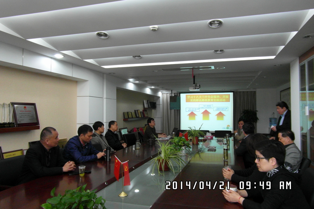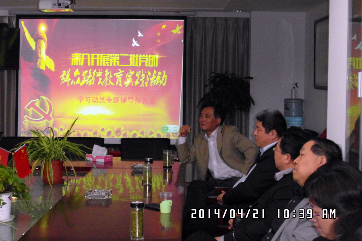 2014年4月21日9:45,北盛公司黨支部啟動(dòng)黨的群眾路線教育實(shí)踐活動(dòng)動(dòng)員宣講專題輔導(dǎo)會(huì),街道副主任,群眾路線教育實(shí)踐活動(dòng)檢查指導(dǎo)組長(zhǎng)徐建超參加了會(huì)議。北盛公司 黨支部副書記葉世安精心準(zhǔn)備了PPT課件,報(bào)告分三個(gè)部分闡述,一、為什么要開展黨的群眾路線教育實(shí)踐活動(dòng)?二、黨的群眾路線教育實(shí)踐活動(dòng)的重大意義。三、“兩新”組織怎樣開展教育實(shí)踐活動(dòng)?為在座的全體黨員上專題輔導(dǎo)報(bào)告。最后,黨支部書記史益敏和檢查指導(dǎo)組組長(zhǎng)徐建超圍繞兩新組織如何開展黨的群眾路線教育活動(dòng)進(jìn)行了指導(dǎo)性發(fā)言。要求全體黨員務(wù)必認(rèn)真學(xué)習(xí)黨的十八大和十八大三中全會(huì)精神,學(xué)習(xí)習(xí)近平總書記的講話精神,積極投入教育實(shí)踐活動(dòng)中去,要?jiǎng)?wù)實(shí)清廉為民抓住三個(gè)環(huán)節(jié),落實(shí)整改措施,完成規(guī)定的“十個(gè)一”活動(dòng);深入基層充分聽取群眾意見,與實(shí)際結(jié)合,把教育實(shí)踐活動(dòng)搞得有聲有色,促進(jìn)企業(yè)發(fā)展。