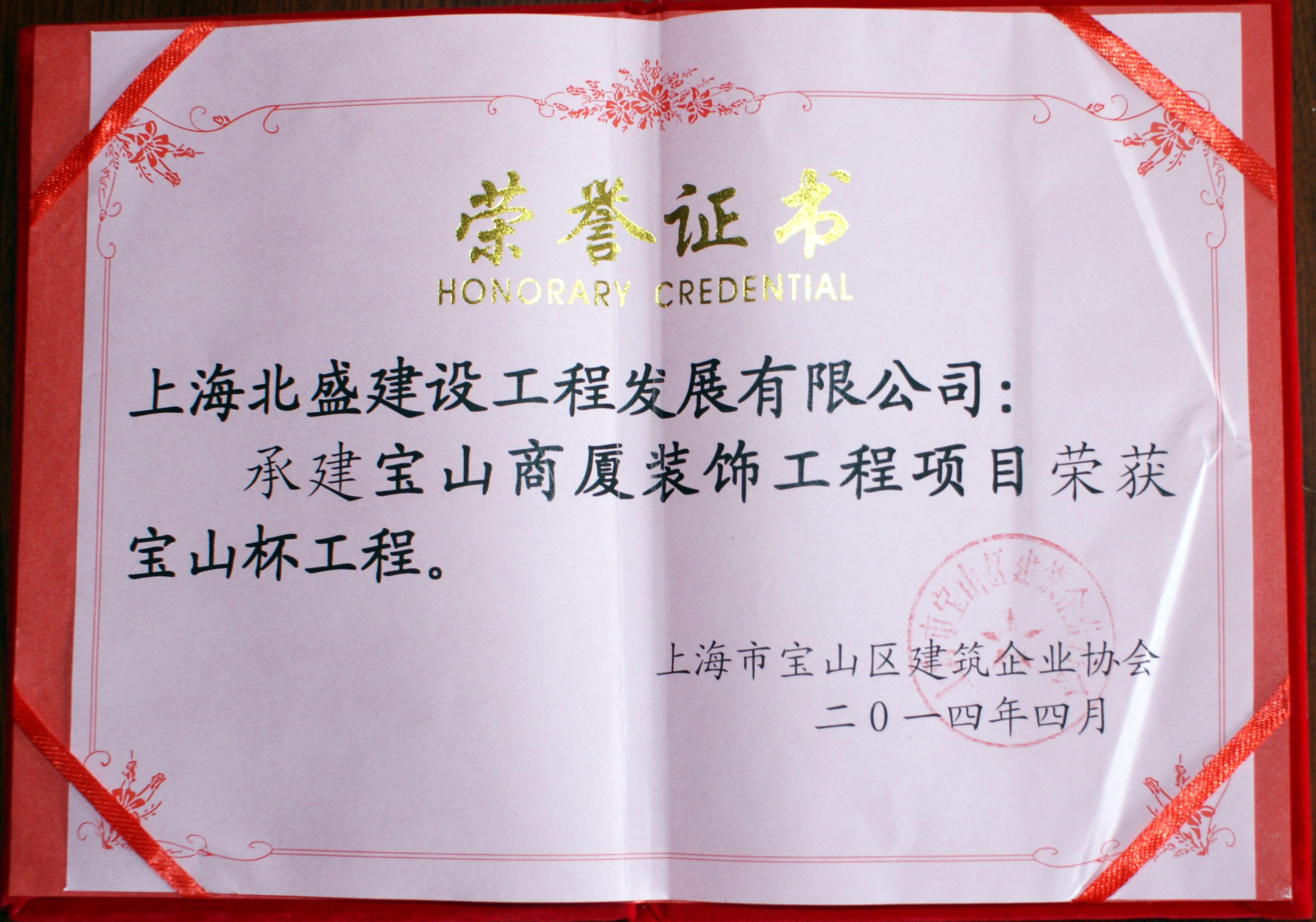 寶山商廈裝飾工程榮獲“寶山杯”獎