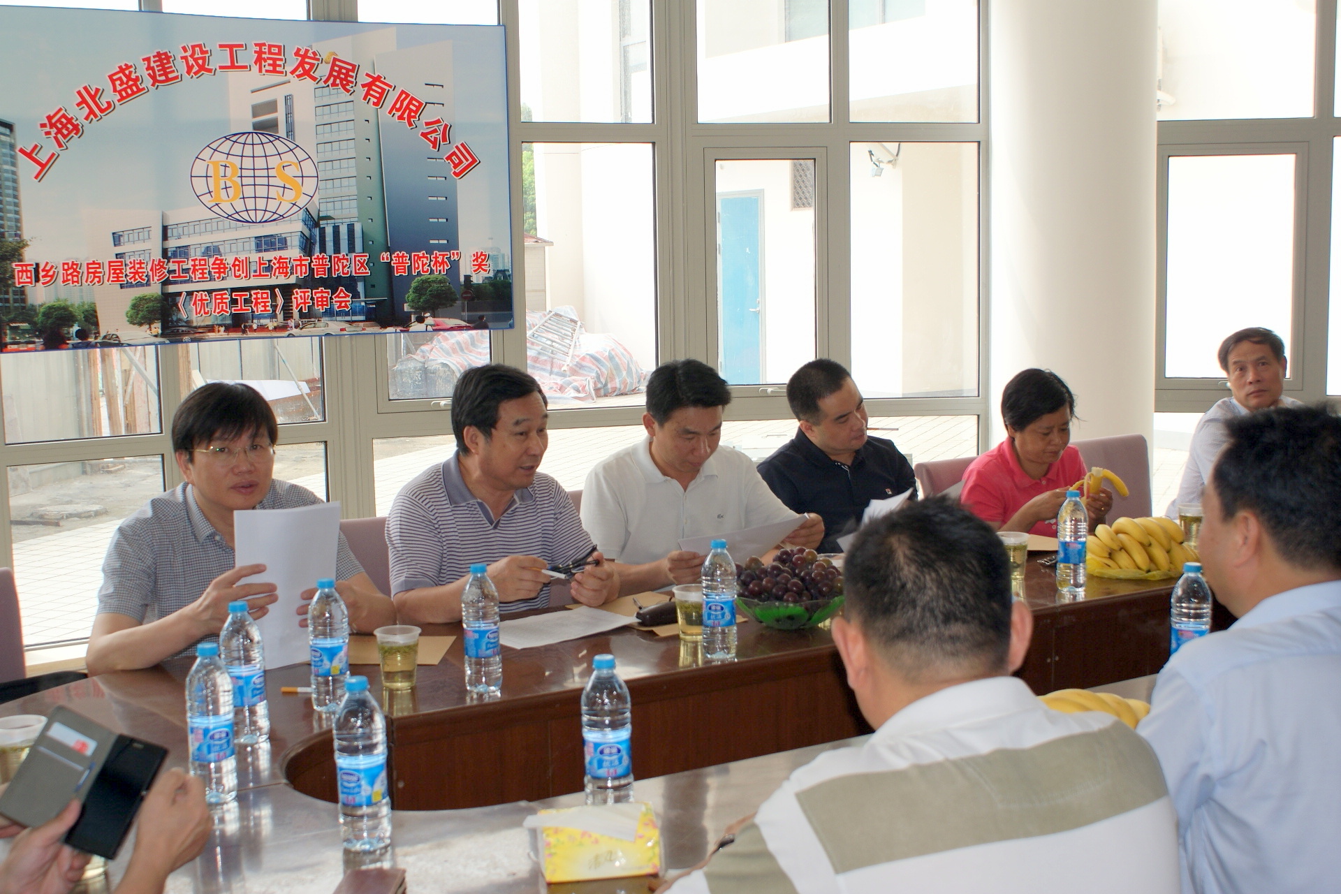 西鄉(xiāng)路188號工程召開“爭創(chuàng)普陀杯評審會” 北盛公司總承包的西鄉(xiāng)路188號裝修工程接近收尾,工友們以辛勤的勞動換來優(yōu)良的工程質(zhì)量,以一絲不茍的工作,將一幢老式辦公樓裝扮的煥然一新。2014年7月14日,工地迎來普陀區(qū)質(zhì)量檢查站領(lǐng)導(dǎo)與專家,進(jìn)行爭創(chuàng)普陀杯(優(yōu)質(zhì)工程)評審。
