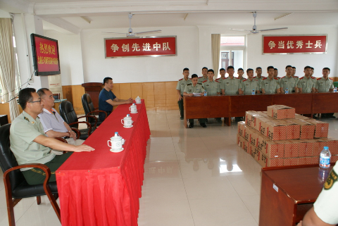 日星期天下午,北盛公司副總經(jīng)理王志林(黨員)在公司黨支部副書記、工會主席葉世安的陪同下,攜帶價值一萬元的慰問品,冒著高溫季節(jié)火辣辣的陽光,趕到武警部隊直屬大隊第四中隊營地進行誠摯的慰問,受到部隊官兵的熱烈歡迎。