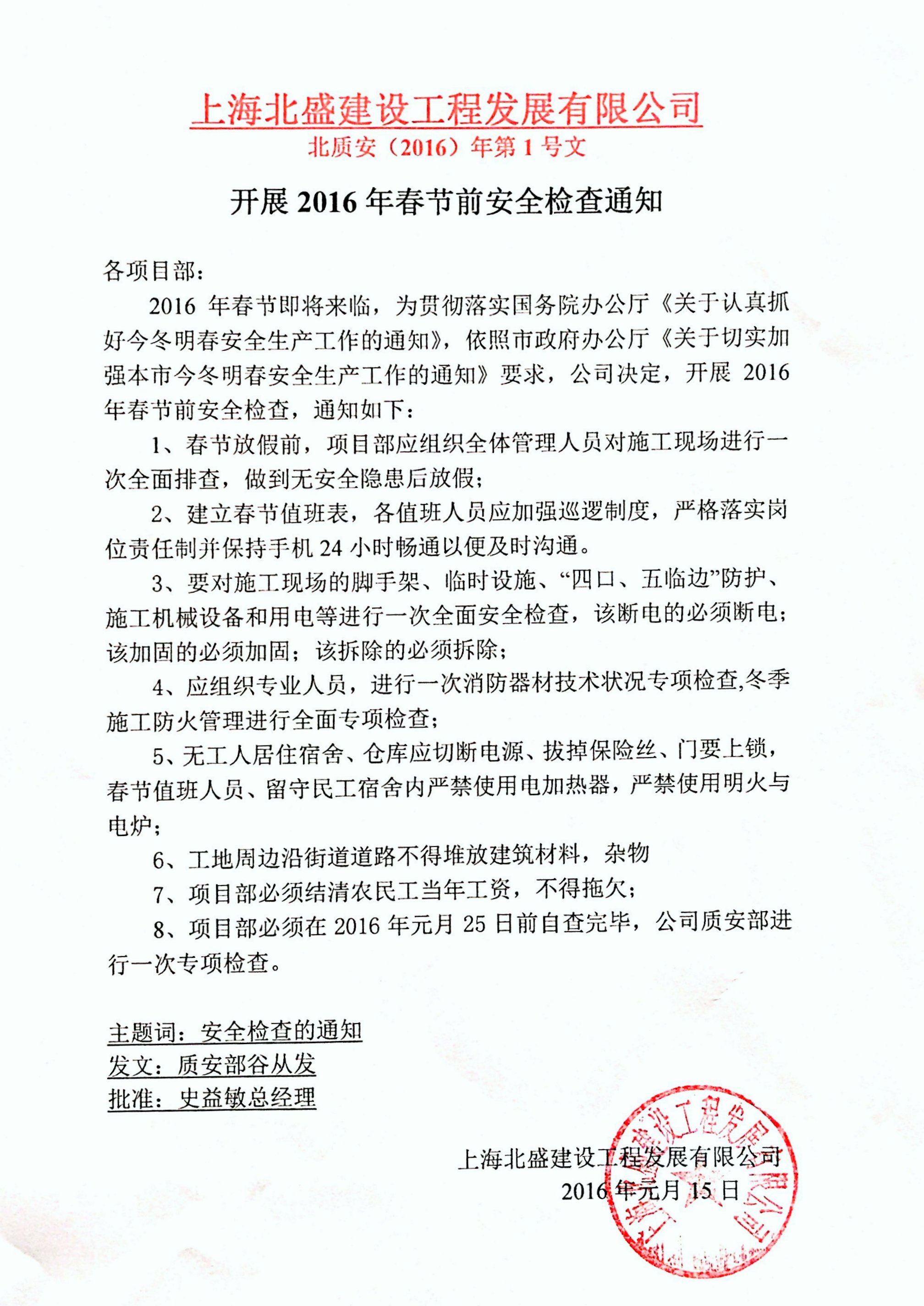 開展春節(jié)前安全檢查通知