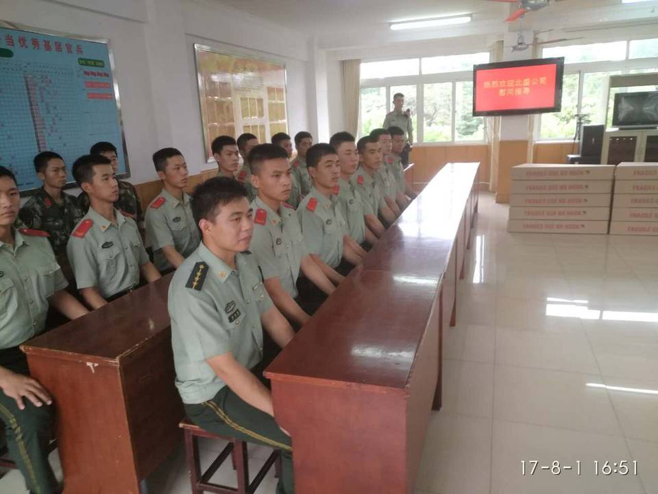 2017年8月1日正值中國(guó)人民解放軍建軍90周年,下午16:30,北盛公司副總經(jīng)理王志林,黨支部副書記葉世安代表公司來(lái)到虹古路453弄慰問(wèn)武警部隊(duì)警衛(wèi)直屬大隊(duì)四中隊(duì),向武警官兵贈(zèng)送專程采購(gòu)的10把馬來(lái)西亞產(chǎn)吉他 ,分發(fā)給每個(gè)班一把供戰(zhàn)士們學(xué)習(xí)彈奏,豐富戰(zhàn)士們的業(yè)余生活。深受官兵們的歡迎。王總即席發(fā)表熱情洋溢的講話,希望武警部隊(duì)官兵能夠遵循習(xí)主席的指示:聽(tīng)黨指揮,能打勝仗,作風(fēng)優(yōu)良,牢記使命,不忘初心,赴湯蹈火,爭(zhēng)取勝利。