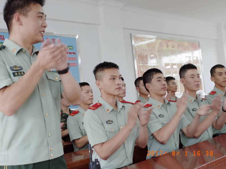 葉書記在會(huì)上向武警官兵朗誦了自己的詩(shī)詞《獻(xiàn)給八一的歌》: