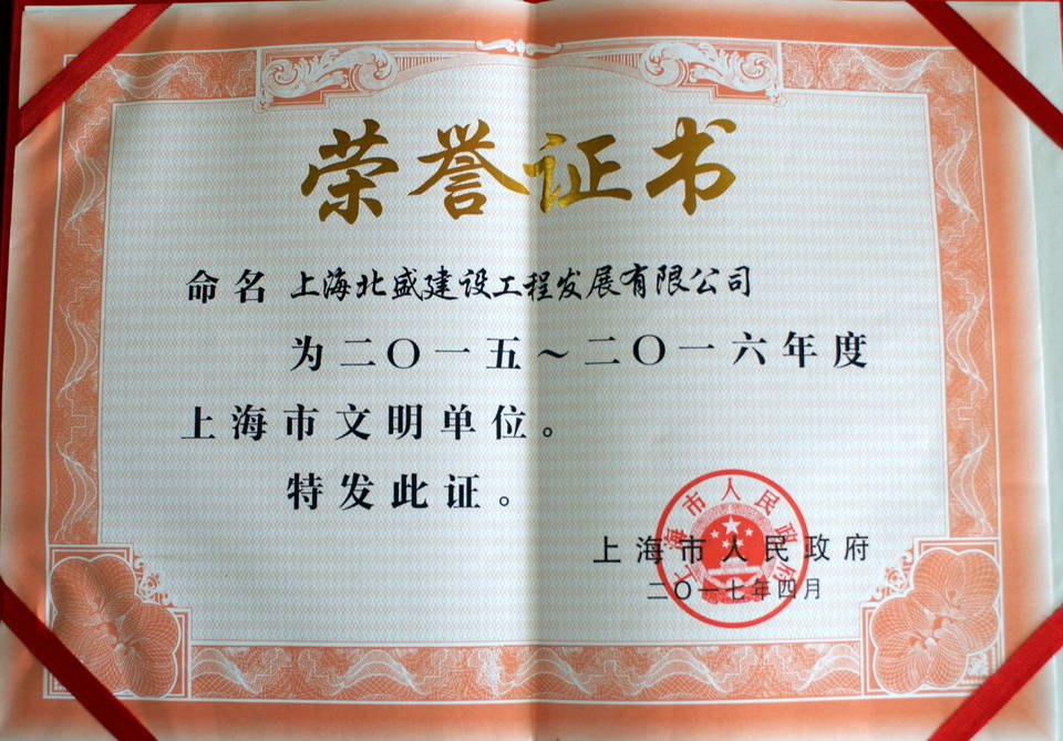 北盛公司蟬聯(lián)2015~2016年度上海市文明單位