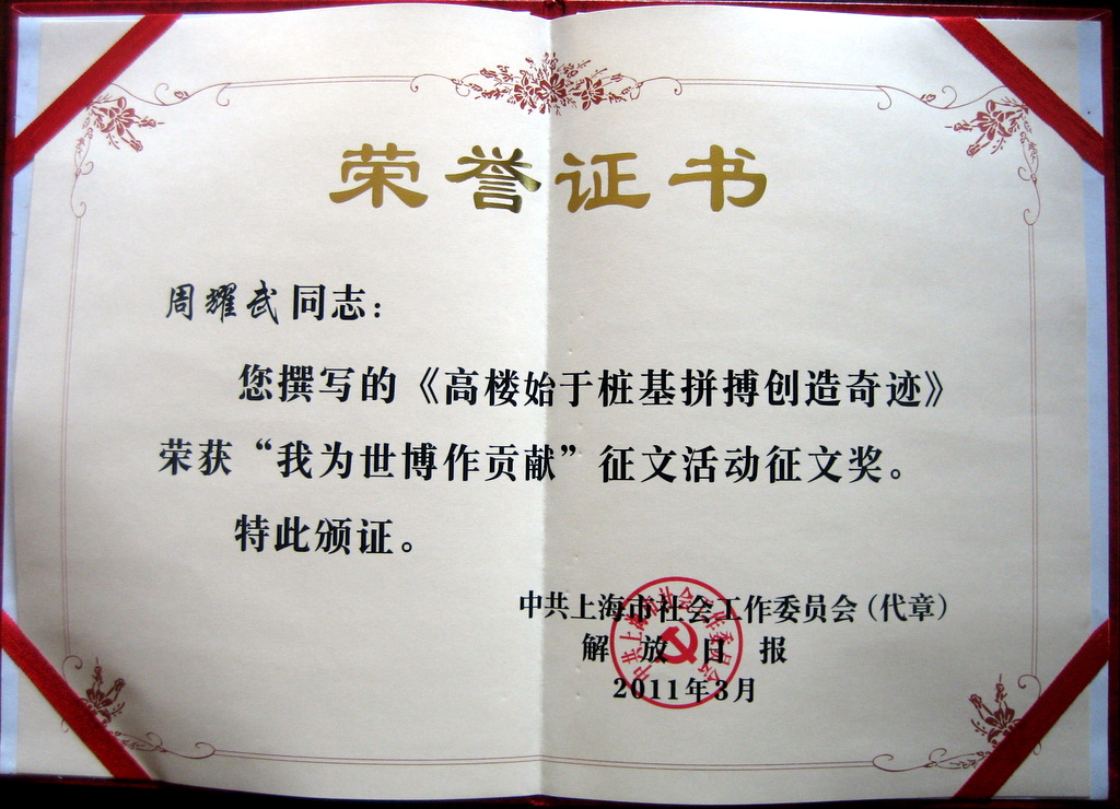 公司團(tuán)隊優(yōu)秀、施工精良、勵精圖治,追求卓越。榮獲上海建筑業(yè)“白玉蘭”獎、金鋼獎、金石獎、浦江杯、“普陀”杯、“閔行”杯、上海市優(yōu)質(zhì)結(jié)構(gòu)、上海市文明工地、上海市重點工程實事立功競賽重大工程賽區(qū)優(yōu)秀集體、上海市工人先鋒號等各種獎項。榮獲上海市文明單位、上海市工商守合同重信用企業(yè)、上海市A類納稅企業(yè)、信用資質(zhì)AAA等級企業(yè),全國安全生產(chǎn)優(yōu)秀施工企業(yè)、普陀區(qū)職工最滿意企業(yè)等光榮稱號。