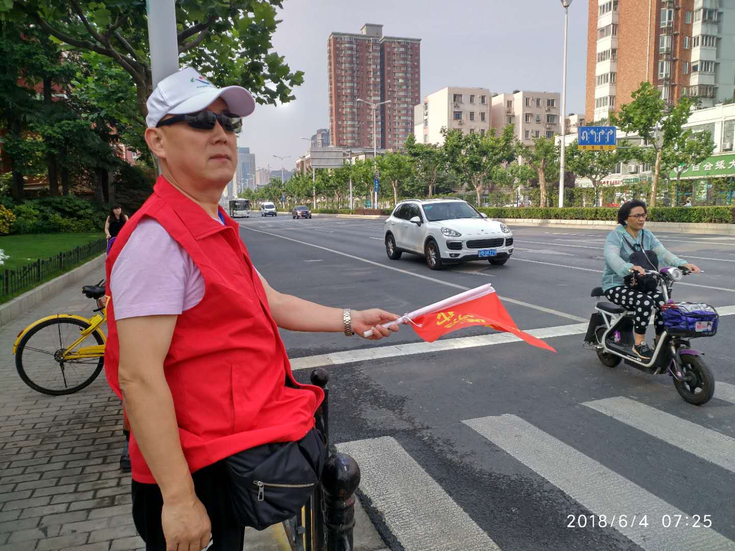 9月25日臨晨,暴雨如注,雷聲隆隆,干旱了一個夏季的上海入秋進入了多雨的季節(jié),北盛公司的二位交通志愿者起個大早,7:30 前趕到大渡河路金沙江路交通路口,換好紅色志愿者馬甲,舉起維護交通秩序的小旗子,堅守自己的崗位。